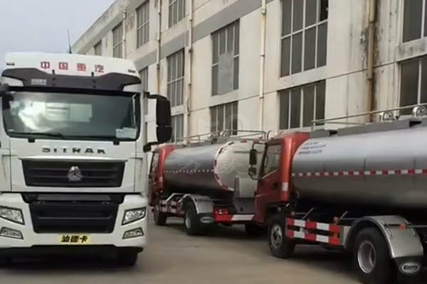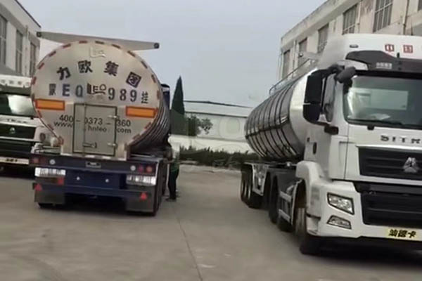 3臺半掛式奶罐運輸車發車現場